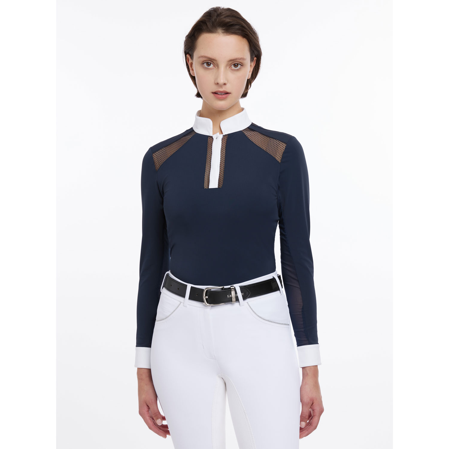 The smart standing collar features a LeMieux silicone logo detail and popper closures.