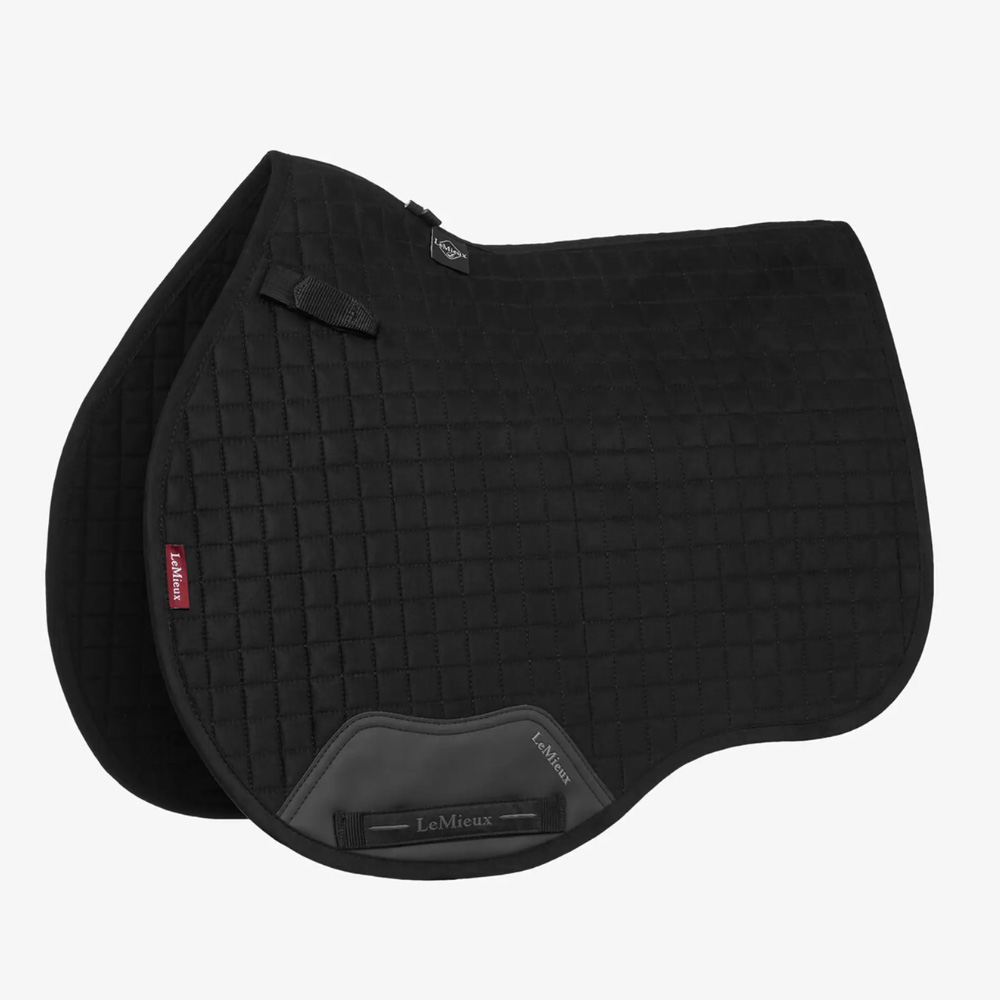The Suede Saddle Pad now comes with the New Super Soft Suede Binding this beautiful suede General Purpose square sets new standards in style & comfort. Now established as the iconic LeMieux look when combined with matching polo bandages and fly hoods there are colours to suit most horses and tastes.Designed to fit a wide range of general purpose saddles with its high wither, standard long straps & New PU Leather girth protection area. The luxurious suede top side and New Soft Suede Binding is complimented by a super soft Bamboo lining to absorb & control sweat under the saddle and are beautifully comfortable and secure – minimising friction.