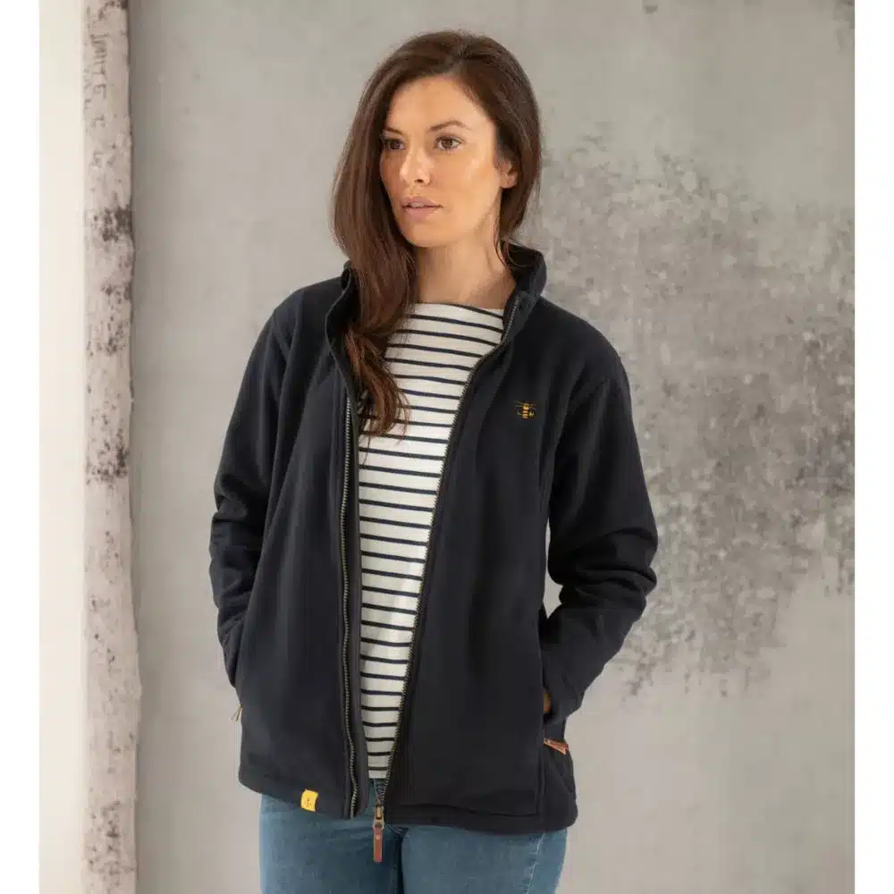 This waterproof fleece is available in a classic Dark Navy or the rich Berry shade, with the useful additional of an adjustable drawcord on the curved hem